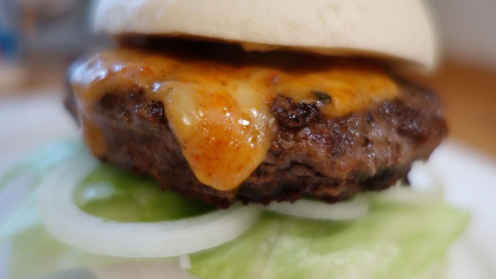 In der Zeit in der die Burger Patties ruhen müssen kann der mexikanische Cheddar drauf gelegt werden. Dazu werden diese vom Grill oder aus der Pfanne genommen und mit einer Schicht (je nach Würzwunsch) mexican Cheddar belegt werden. Ideal wäre ein Deckel, damit der Käse schön verläuft und lecker aussieht.