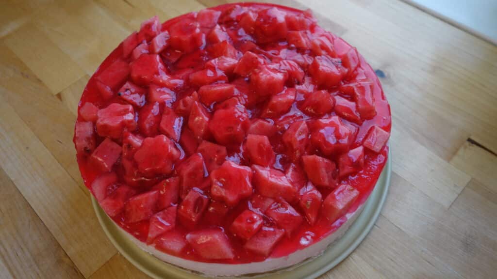 In der Zwischenzeit den Ofen auf 200° Ober/Unterhitze vorheizen. Die Form in den Ofen schieben, nach 5 Minuten auf 180° runterschalten und weitere 40 Minuten backen.